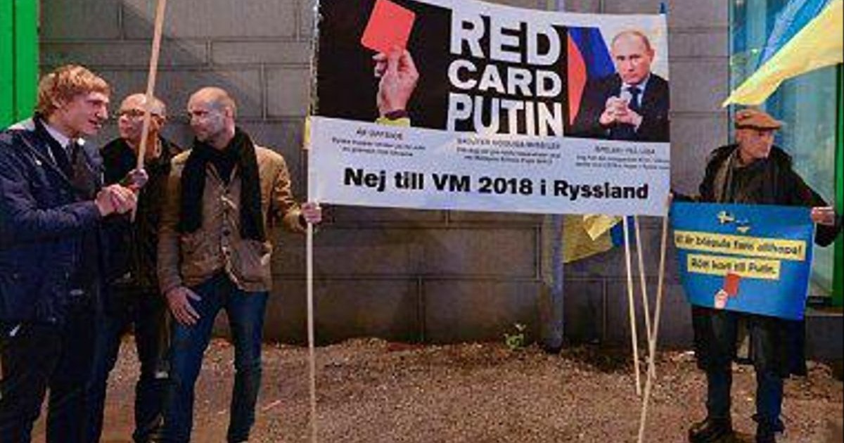 The rally against the policies of President Vladimir Putin took place Thursday evening near Friends Arena in Stockholm before the Euro 2016 qualifying match between Sweden and Russia (The score was 1:1).
