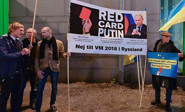 The event was held by Ukrainians living in Sweden. The action was performed in the place all the fans were going through heading to the stadium. Some Russian fans tried to prevent Ukrainians and started a broil, but the fans were pushed by the Stockholm police. "We said no to Russian troops in Ukraine and to the World Cup in Russia. We stood up for our values - peace and democracy in Ukraine, despite numerous threats and insults from the Russian fans," organizers said on their page on Facebook.