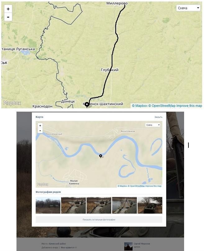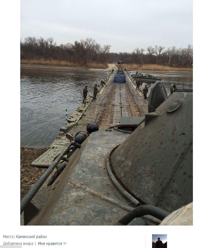 "It should be noted that the Russian military command tries to transfer the units directly to the frontier zone covertly, with minimum use of major roads (so as not to be caught on cameras). The movement of military convoys from Millerovo to Kamensky district is carried out not by the central highway Don but through a detour route. To ensure smooth movement of these convoys, military engineers deployed a pontoon ferry across the Donets river in the vicinity of the Filippenkov village," Komakhidze writes.