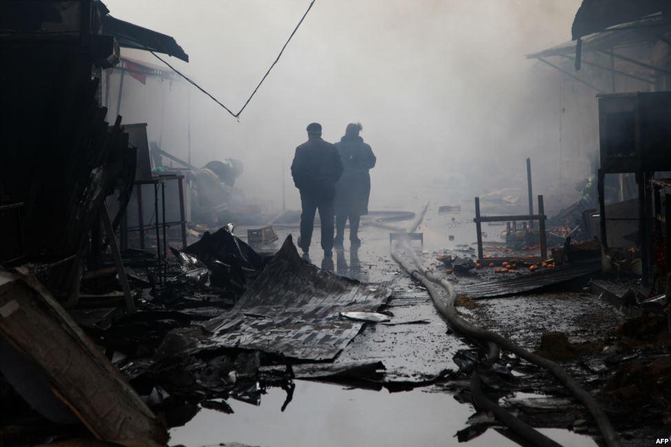 Media reported that fierce fighting was under way near the city school #20. The school caught fire through the use of armored vehicles' weapons and flame throwers.