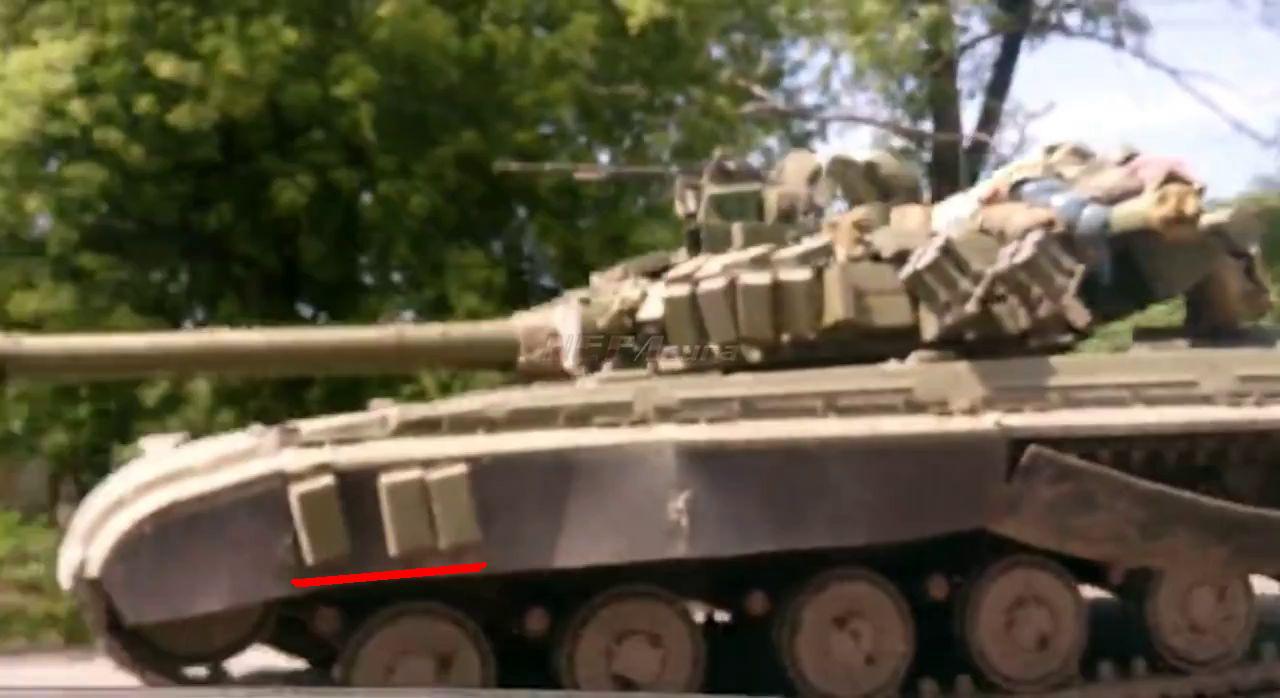 Specialists will immediately notice poor and lamely installed active protection systems (rectangular boxes marked with red lines) on the sides of some of these T-64BVs. As if someone has tried to imitate "self-made," or there was no standard fabrication at hand:
