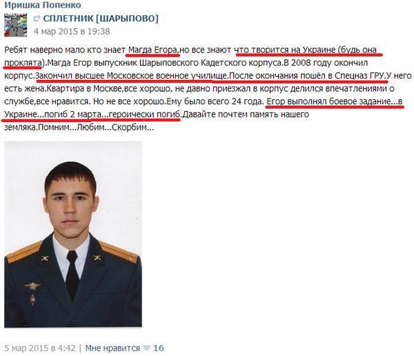 Then detailed information about GRU's Yegor Magda was deleted completely leaving the words: "Motherland should know and honor the memory of its heroes." Ukrainian investigative blogger Anton Pavlushko wrote.