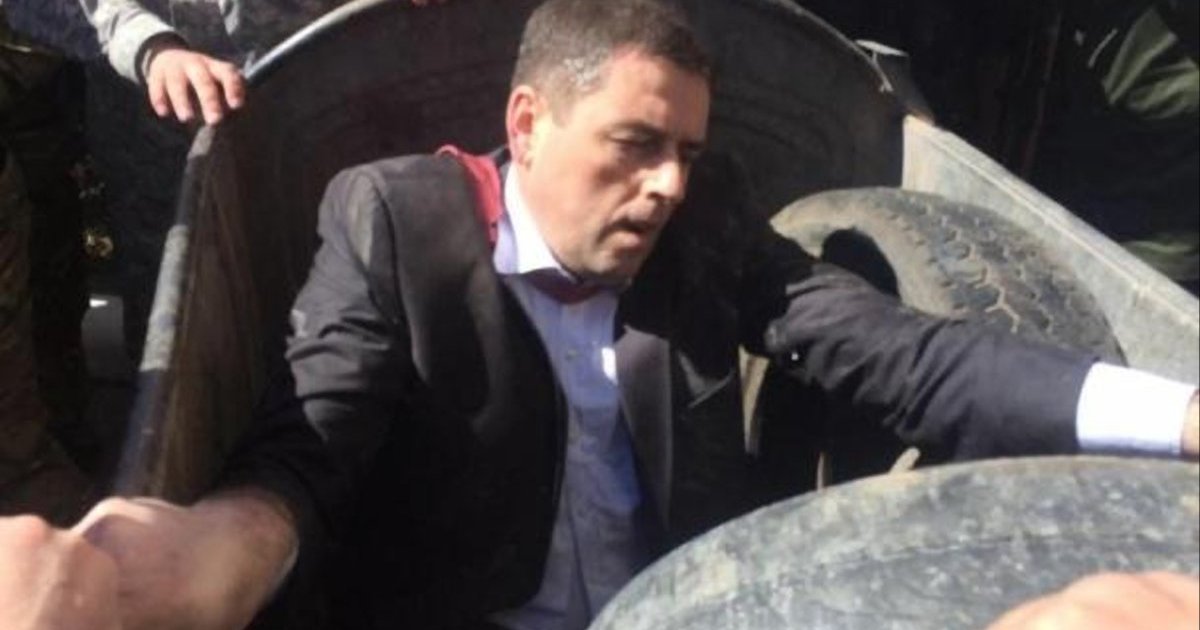 As reported by Censor.NET citing TSN, young people in camouflage with Right Sector chevrons threw head of the Ivano-Frankivsk regional justice department Vasyl Kavatsiuk into a dumpster and wheeled him around the city on April 9. Representatives of local self-defense entered Kavatsiuk's office and carried him out. He was subsequently thrown into a dumpster and wheeled along the city streets.