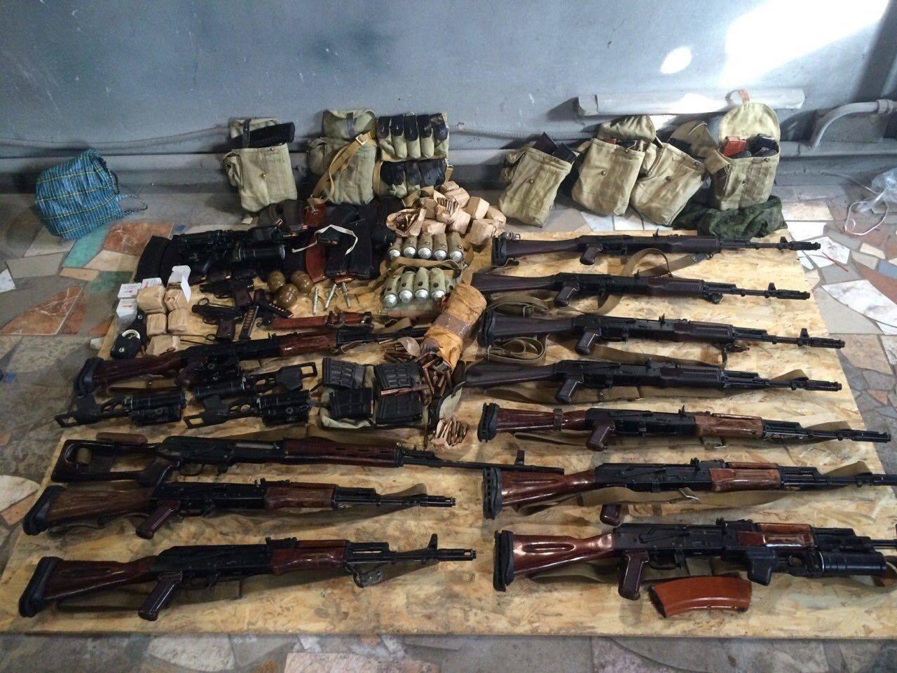 "Coordinator of the terrorists was the head of the Kharkiv organization "Oplot" Yevhen Zhylin. A large arsenal of weapons and means to carry out subversive acts, including RPG-7 rocket launchers, RPO-A rocket launchers, Kalashnikov assault rifles, under-barrel grenade launchers, Dragunov sniper rifle, handguns, including suppressed ones, time-controlled sticky bombs, sabotage mine for blowing up and ignition of fuel in tanks or to inflict damage to surface pipelines, grenades, a large quantity of plastic explosives and cartridges of various calibers for small arms, initiators, different tools and edged weapons were seized from the members of the group. All of this was delivered to Ukraine illegally," adviser to the head of the SBU wrote.