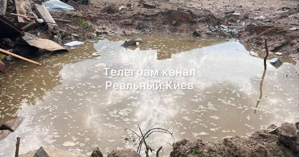 There is also a photo showing a funnel from a second rocket hitting a playground near a kindergarten in Kyiv.