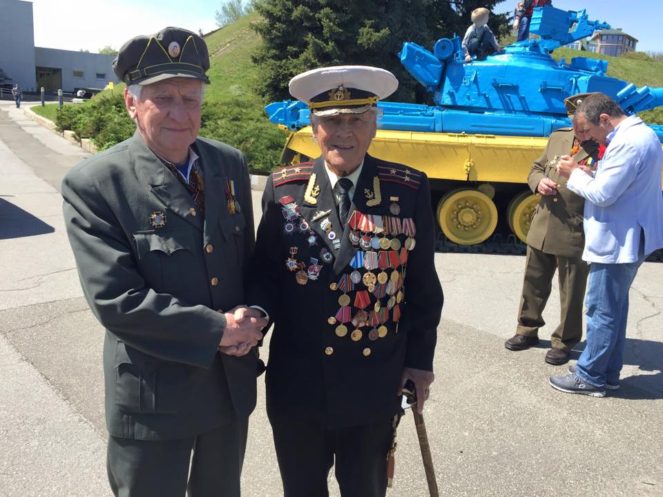 "I felt really enthusiastic today when I saw the legendary Simchich and Petrash with Zaluzhnyi and other Red Army veterans embracing and fraternizing. I am very grateful to the veterans that they have accepted the invitation of the club and came to Kyiv. We should show the East and the rest of the world that even our veterans are united and support the unity of the country! They all would have been volunteers in the East if they were 40 years younger. We all had lunch later together with the "Movement for the sake of Future", the Institute of National Memory, interfactional deputy association "Kolo" and the Ministry of Defense representatives Volodymyr Viatrovych and Pavlo Kyshkar in the office of "Kolo".
