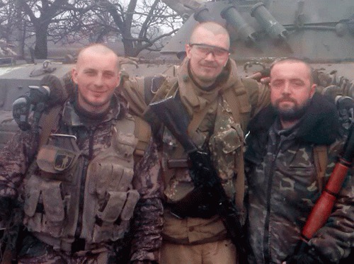 Artem (center) with his fellow fighters in Shyrokyne