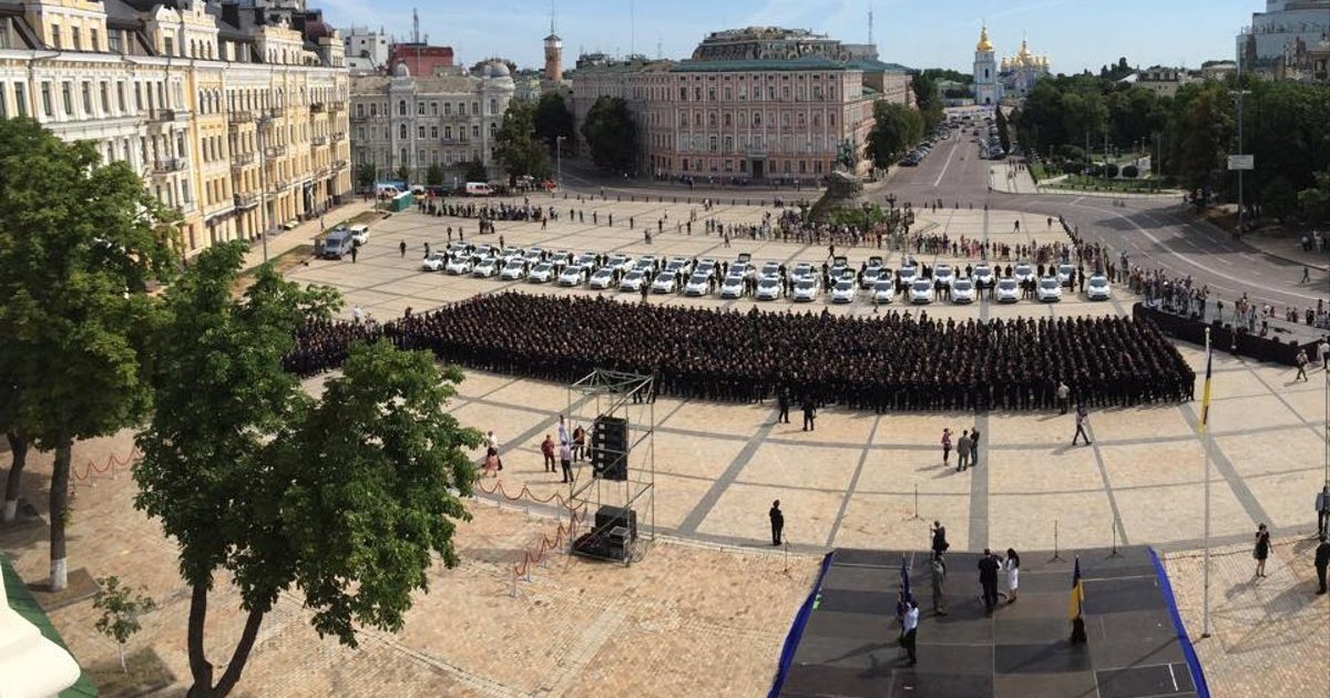 Patrol police pledged allegiance to Ukrainian people at Sophia Square in Kyiv.