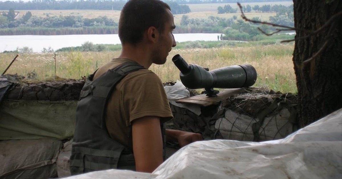 Fighter of the 28th Brigade observes the enemy.