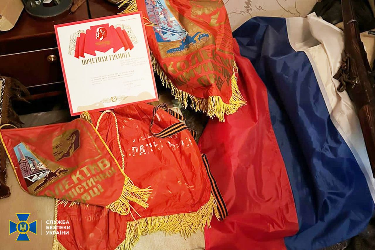 The defendants were also found to be carrying banned Soviet and pro-Kremlin symbols.