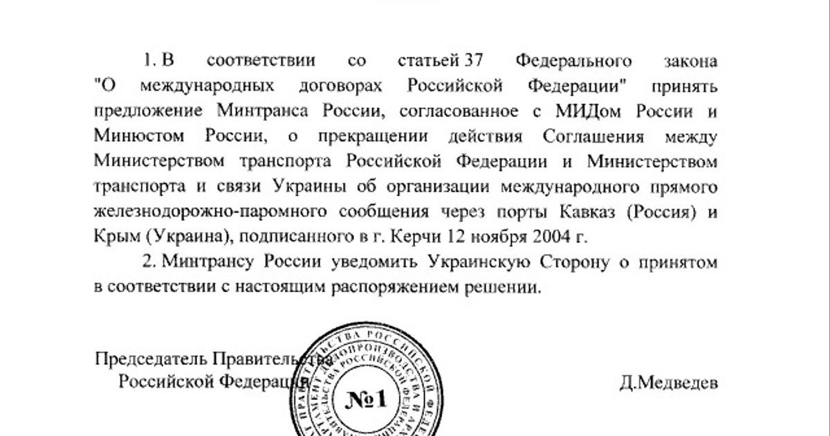 Russia terminates agreement with Ukraine on railroad ferry connection. DOCUMENT