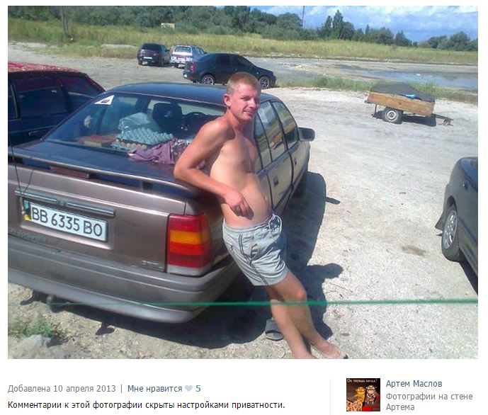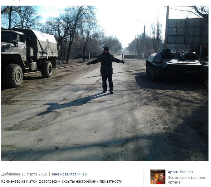 The fact that A.Maslov is not a serviceman of the Russian army and is just a local Donbas separatist in the ranks of 'Novorossia' gang is proved by the pictures of his private photo album. It means that he could make a picture in front of Russian 'Pantsir' and 'Ural' only in Donbas.
