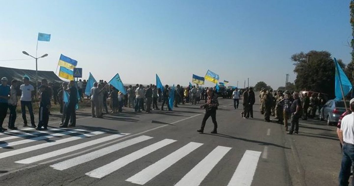Crimean Tatars and activists blocked Chonhar. PHOTO