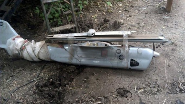 An 'Orlan-10', shot down on July 18, 2014 by paratroopers of the 79th brigade of the Ukrainian Armed Forces