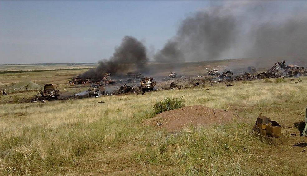 Aftermath of a multiple rocket launcher system attack on the bases of the 24th and 79th brigades of the Ukrainian army on July 11, 2014 near Zelenopillya, Luhansk Oblast. According to the Ukrainian Ministry of Defense, the attack resulted in 19 dead and 93 wounded.An 'Orlan-10', shot down on July 23, 2014 near Amvrosiivka, Donetsk region.