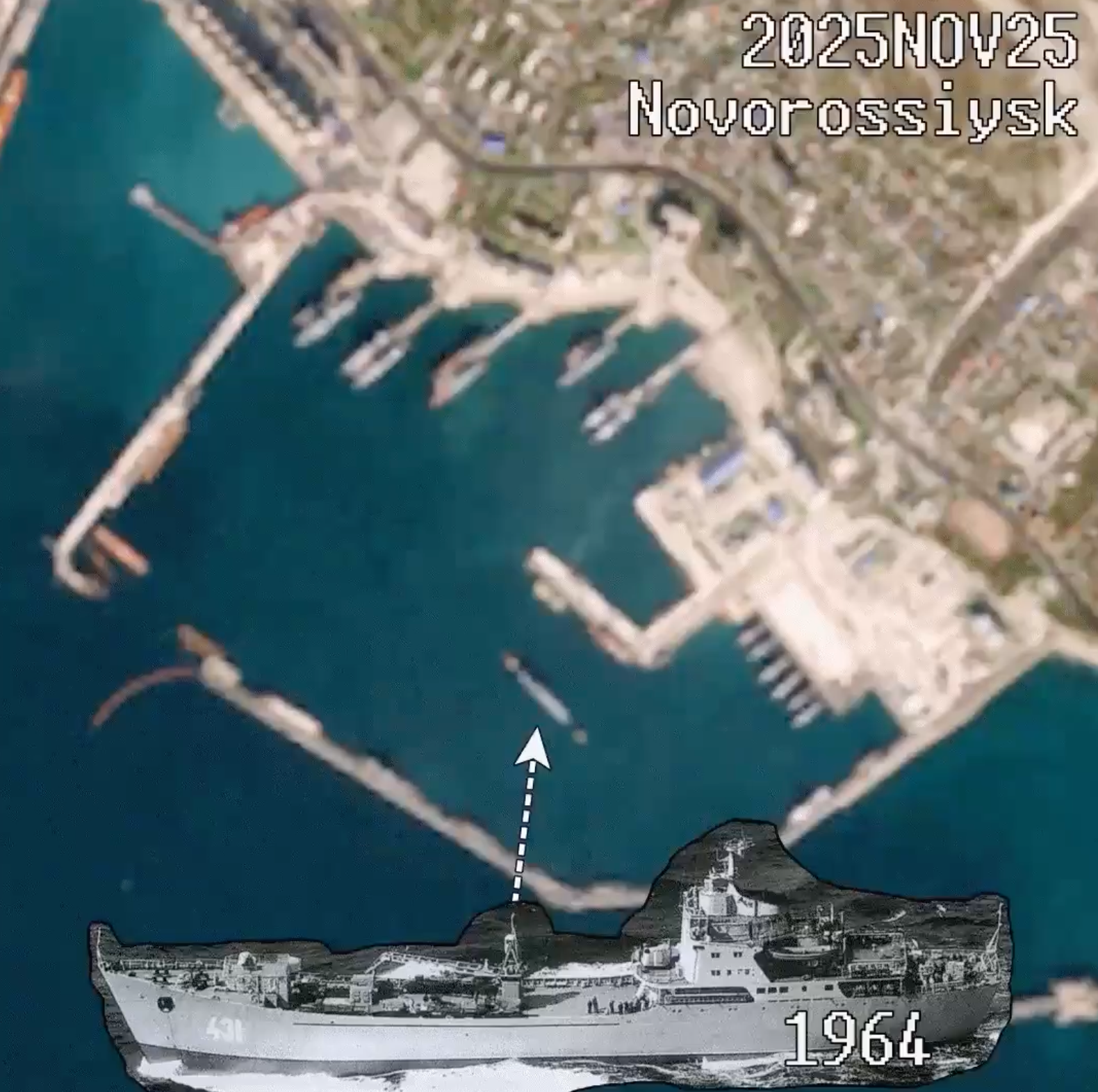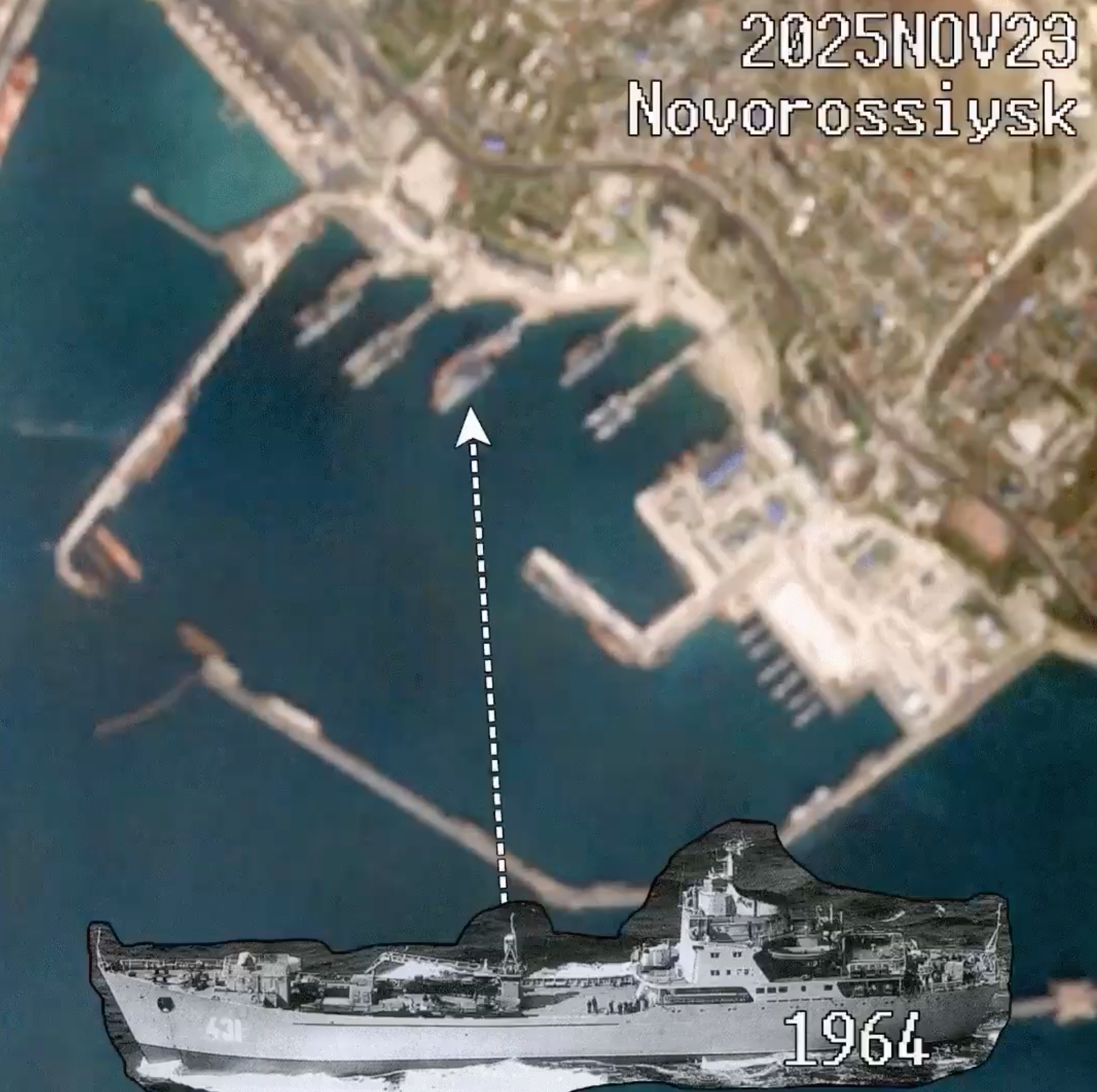 A Project 1171 Tapir-class large landing ship came under attack by Ukrainian drones during a strike on the Russian naval base in Novorossiysk in the night of 25 November.