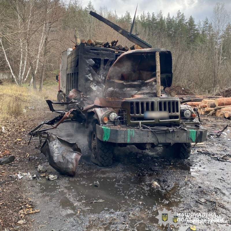 Today in the city of Izium, Kharkiv region, a strike UAV hit a vehicle while firewood was being transferred from a ZIL truck to a tractor unit.