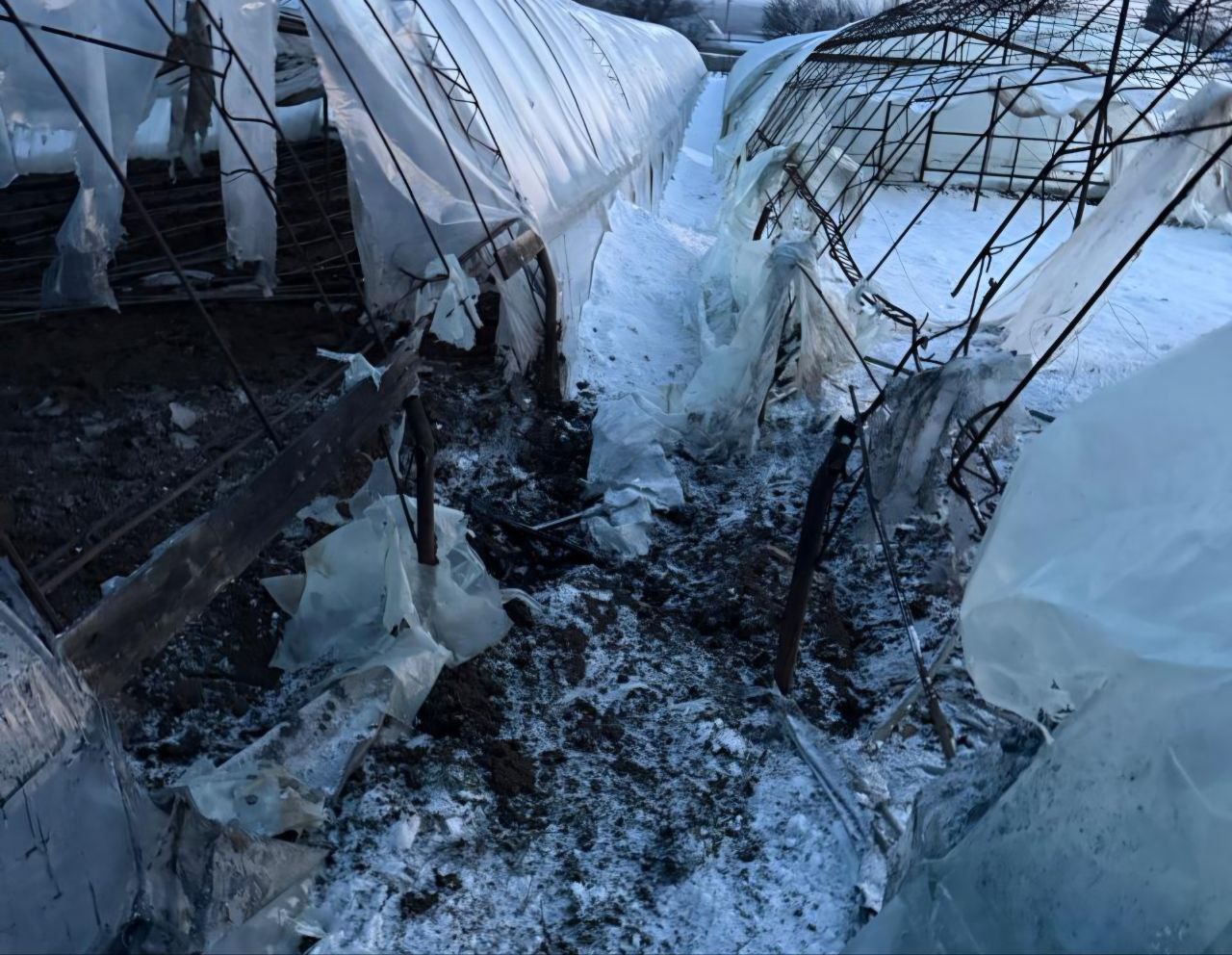 The attacks caused a fire. Infrastructure, two private houses, a garage, greenhouses, an unused building, a car, gas pipelines, and a power line were damaged.