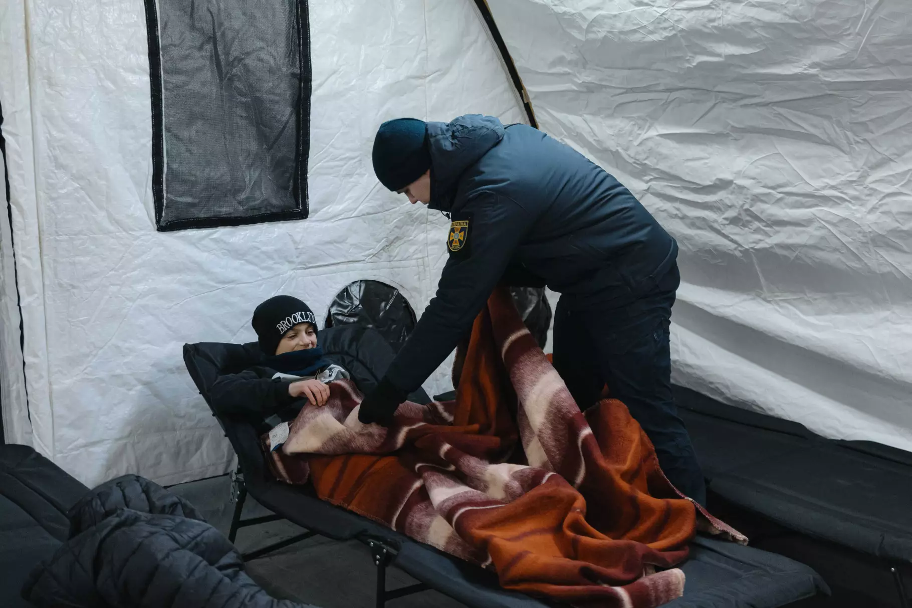 On the Left Bank, tent camps with sleeping places have been deployed at two locations. They are intended for people who need pre-medical assistance or have medical indications. Until medical services arrive, these people can stay at the State Emergency Service heating points.