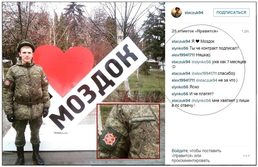 "There are also other indirect evidence about Statsuk belonging to the military unit located in Kabardino-Balkaria. For example, the comments in the blog of some @soldier_boys07, one of Statsuk's friends, where the service in this region was mentioned.