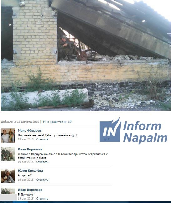 In his photo comments, Ivan does not conceal the fact that he is in Donetsk.