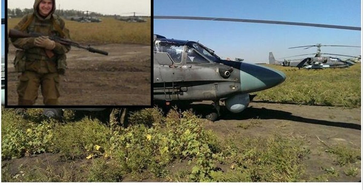 "3. This picture was made in the fields, where our hero is holding an AK rifle with attached silencer and posing in front of Ka-52 combat helicopters.