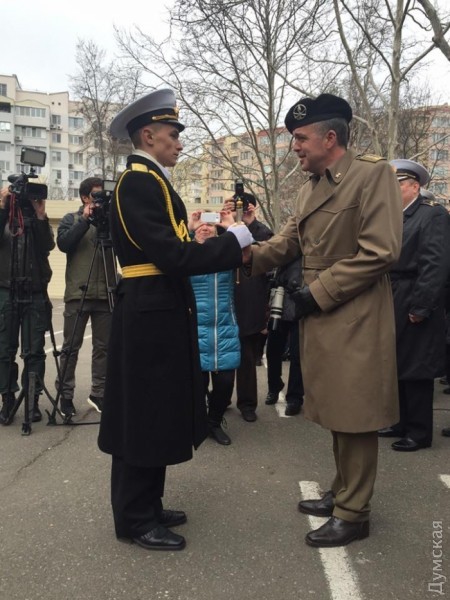 There were those among the graduates who studied in Nakhimov Naval Academy in Crimea and sang Ukrainian anthem as Russian flag was being raised there in 2014. Oleksii Kharchenko, one of the graduates, who served internship in the Italian Navy, has merited the dirk of that country. Italian military attache has bestowed it to the Ukrainian cadet.