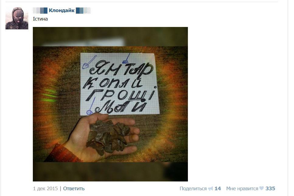 "In July 2015, Poroshenko gave security officials two weeks to eliminate the "protection" of illegal amber extraction. In fact, production scale only grew," the activist reminded citing the online page of the "diggers".