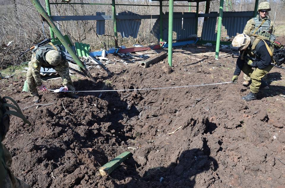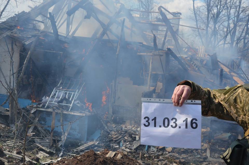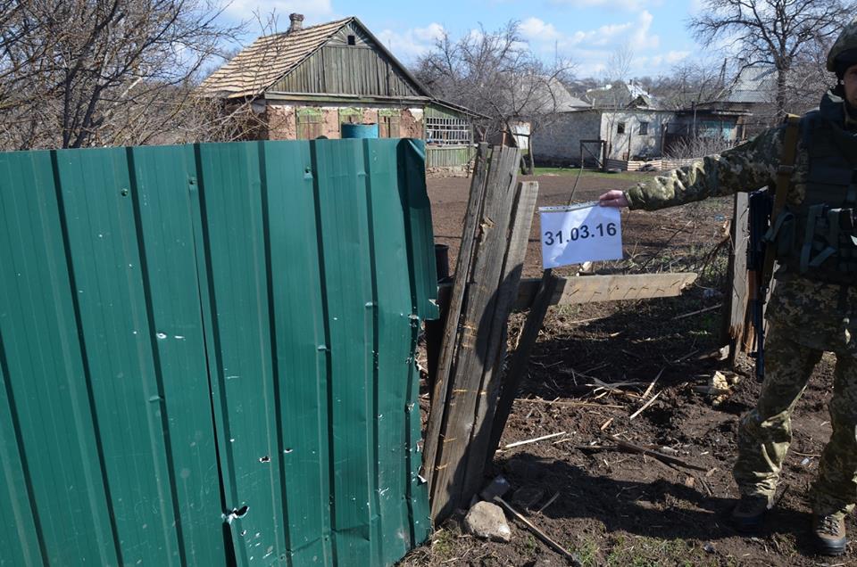 The report reads: "The militants of the illegal armed groups have fired at least a hundred rounds of various calibers at the village of Zaitseve this morning. One building was razed to the ground while some other were significantly damaged as a result of massive shelling committed from the village of Holmivske, southern part of Zaitseve, and Rumiantseve villages occupied by the militants. 152-mm and 122-mm artillery as well as 120-mm and 82-mm mortars were used. There are numerous fresh craters of one to one and a half meters in depth and 2-4 meters in diameter in the territory of almost every homestead in Zaitseve.