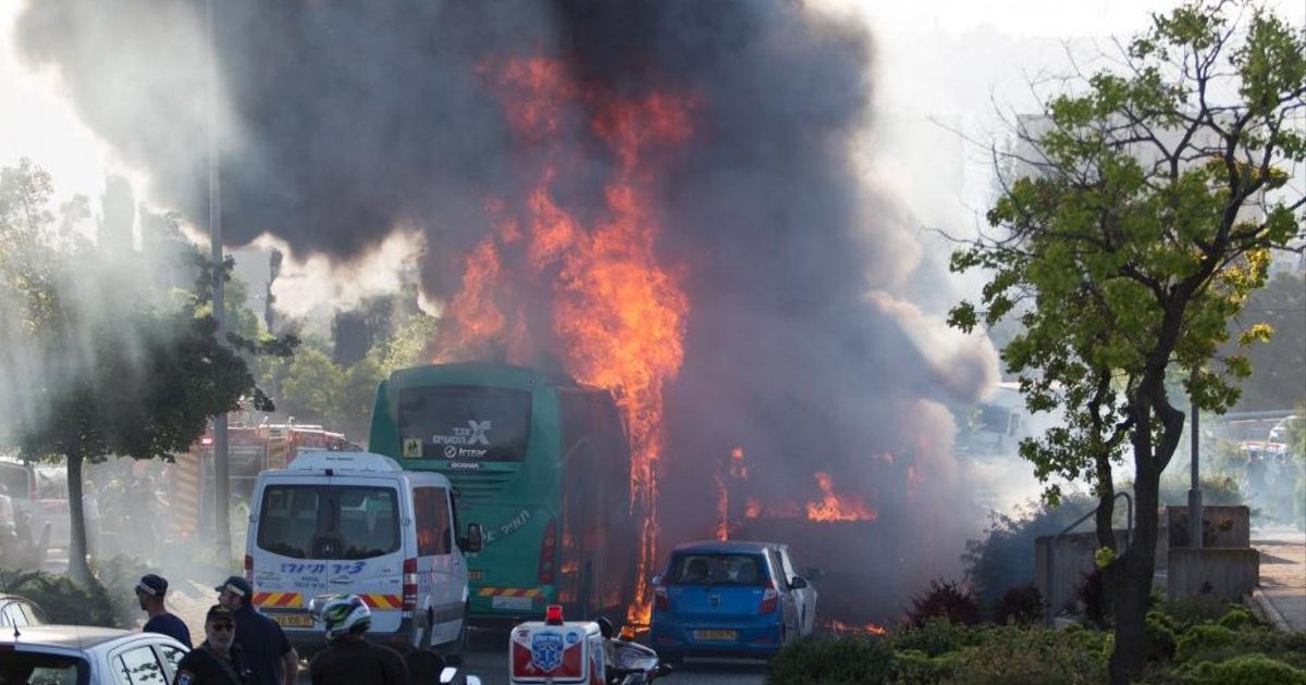 A bus blew up and caught fire in Jerusalem on Monday, April 18.
