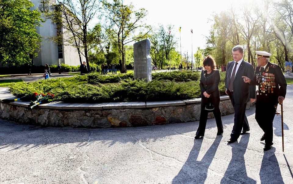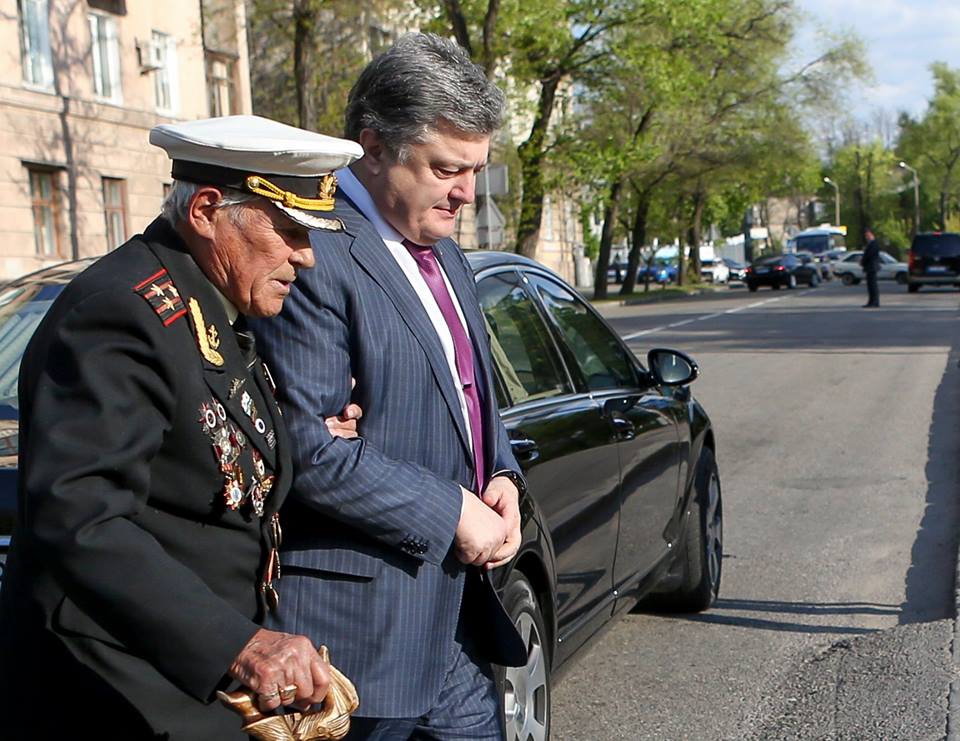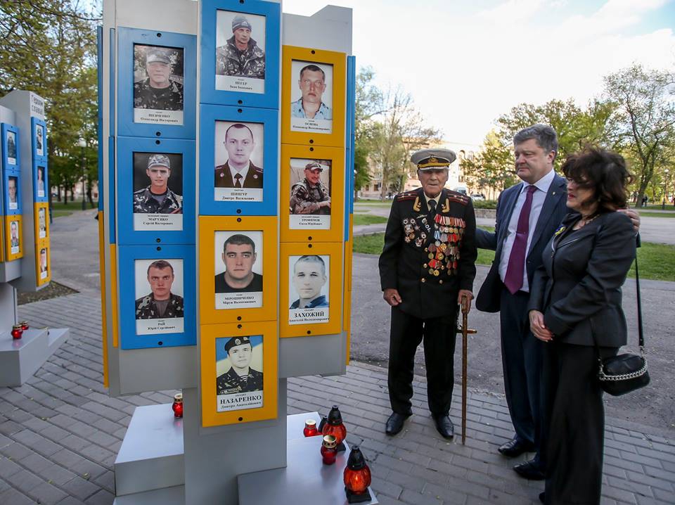 President of Ukraine Petro Poroshenko paid tribute to deceased Ukrainian soldier Ivan Zaluzhnyi together with his grandfather, 97-year-old veteran of the World War II Ivan Zaluzhnyi Sr. in Zaporizhia today.