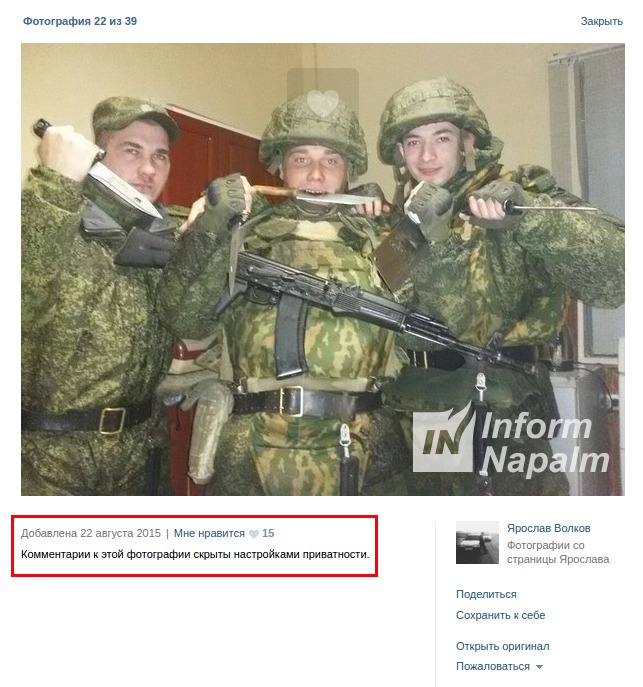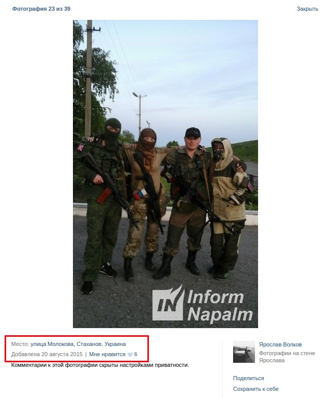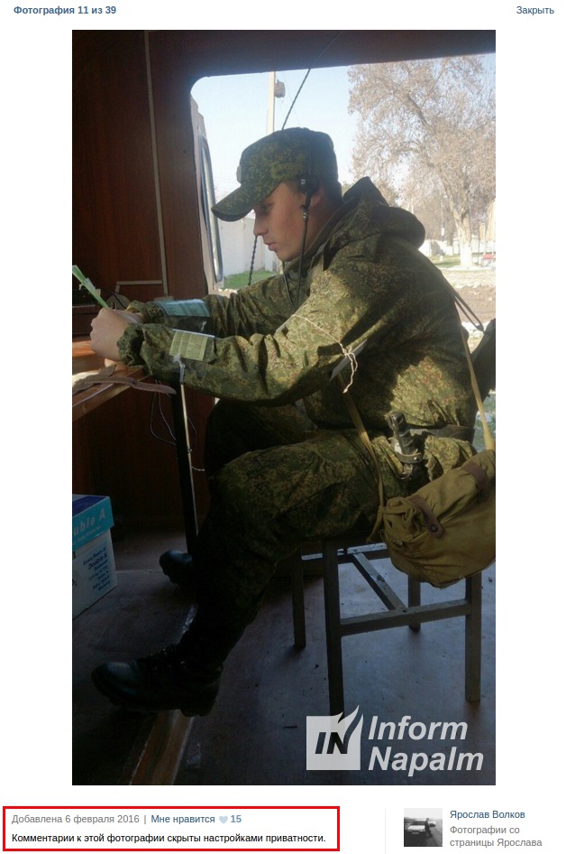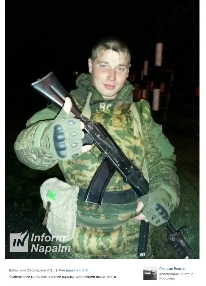 Photos below confirm the fact of participation of Yaroslav Volkov, a Russian serviceman on active military duty, in the fighting in the Donbas.