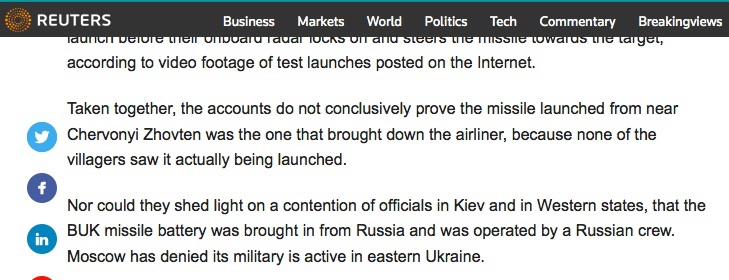 Moreover, immediately after the downing of MH17, Reuters (Anton Zverev again) interviewed Khodakovsky, who admitted the presence of a Buk launcher which came from the LPR side: