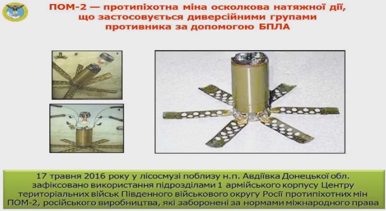 "On May 17, the use of a POM-2 mine, dropped from a drone by units of the 1st Army Corps, was recorded near Avdiivka," he added.