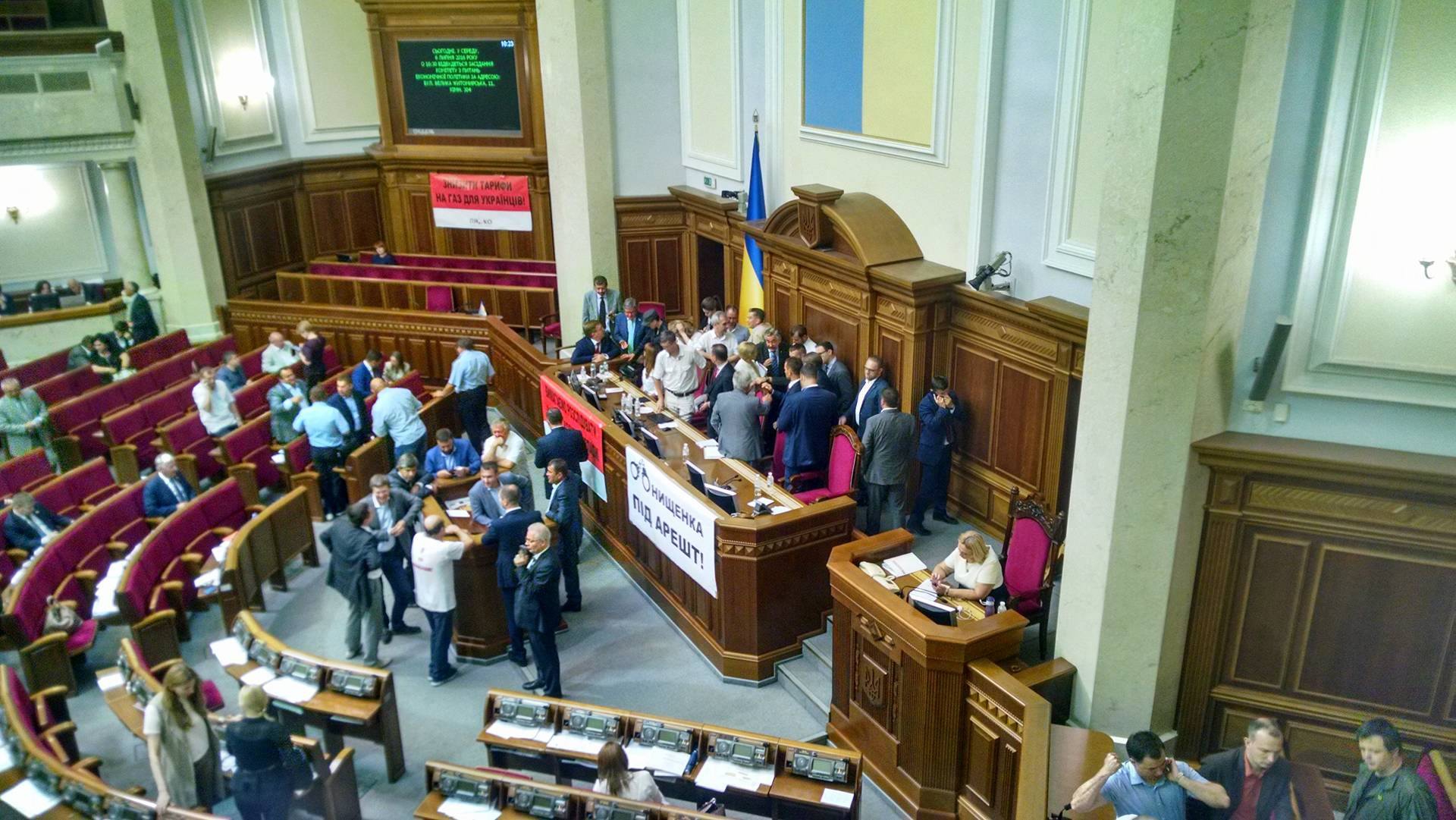 This morning, the representatives of Radical Party and Batkivshchyna factions as well as some independent deputies continue blocking the work of the Verkhovna Rada.