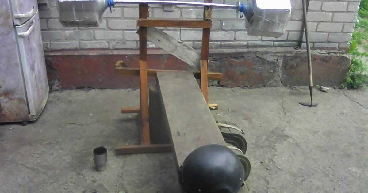 Censor.NET reports citing Vitalii Kyrylov's Facebook.Kyrylov posted images of sports equipment that soldiers of the Ukrainian army made for themselves to train: hand weights made of shell casing, bars constructed of trees, and barbells made of logs and water bottles.