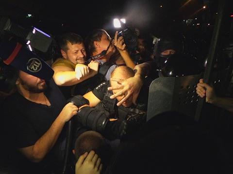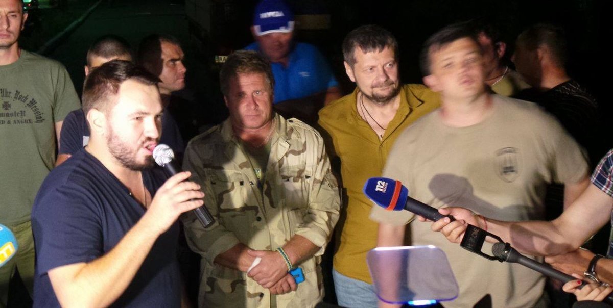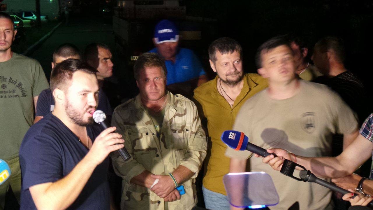 A brawl between supporters of the disbanded Tornado Company soldiers tried by the Obolonskyi district court of Kyiv and law enforcement officers took place late this evening.
