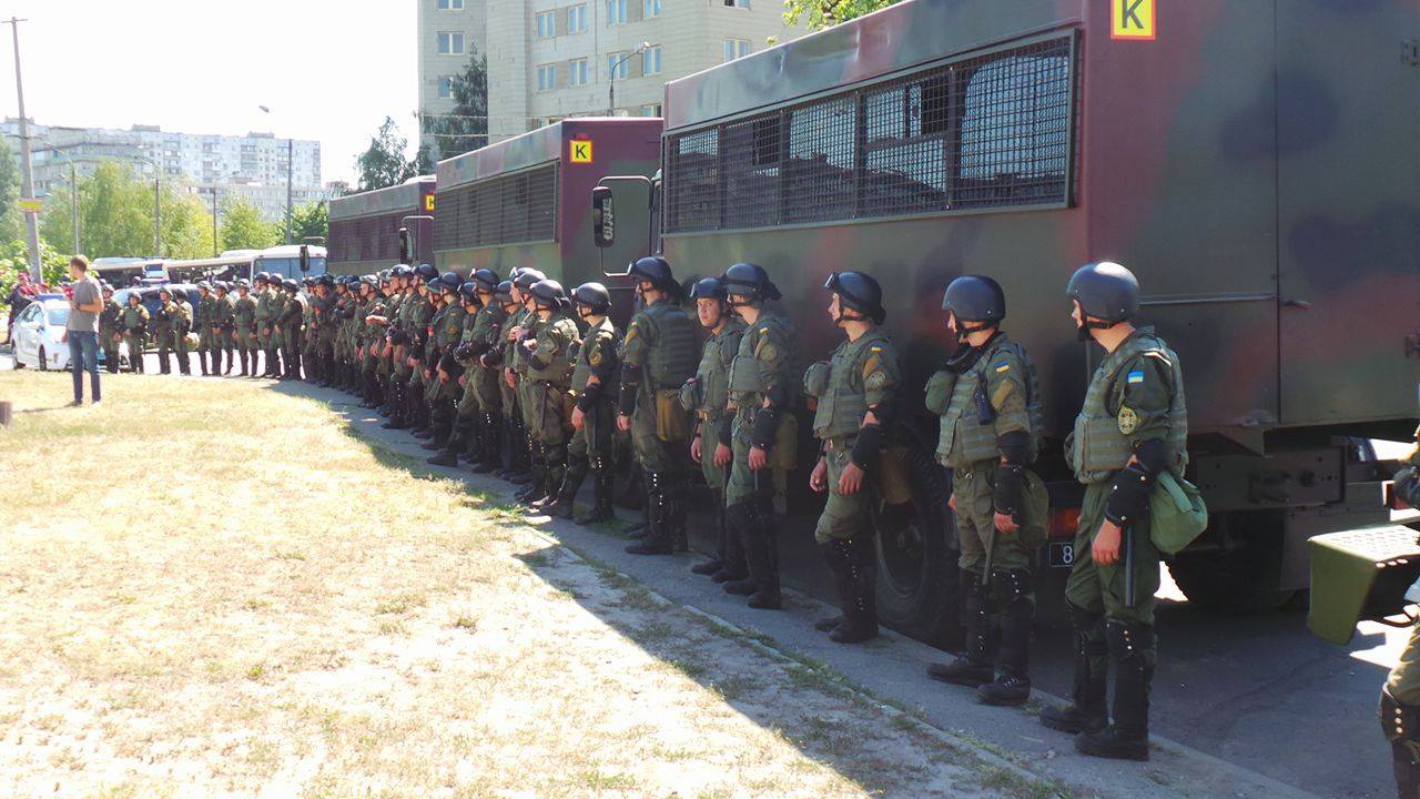 MP Semen Semenchenko (right) failed to pass the cordon. He was able to enter the courthouse only when journalists began filming the clashes.