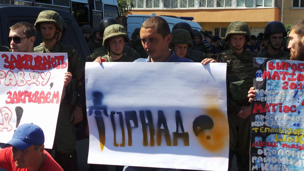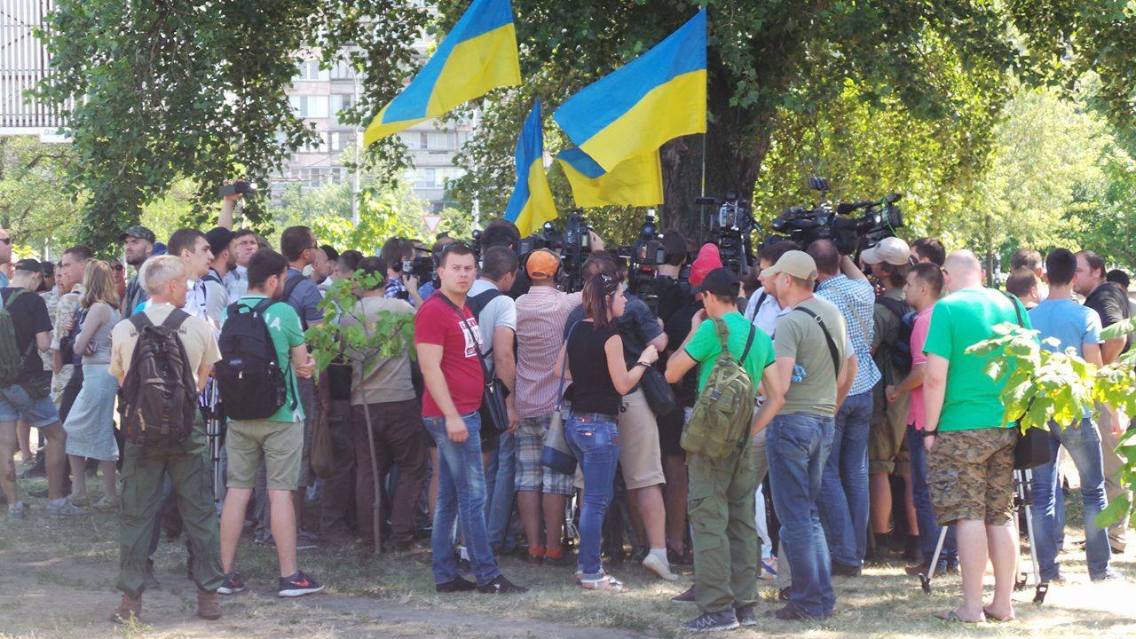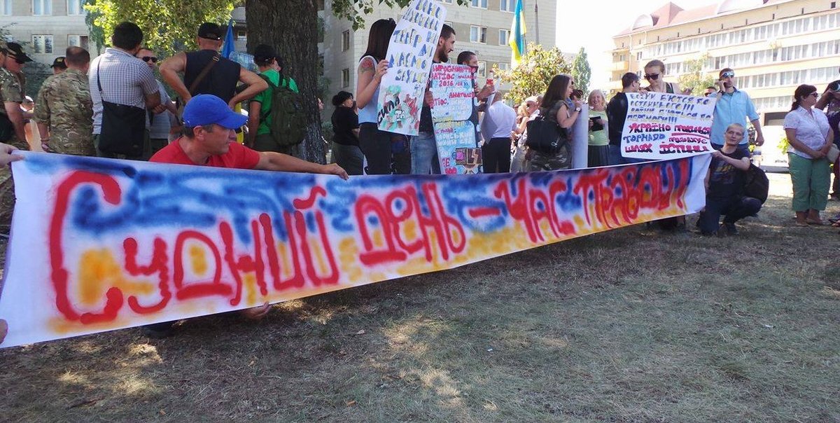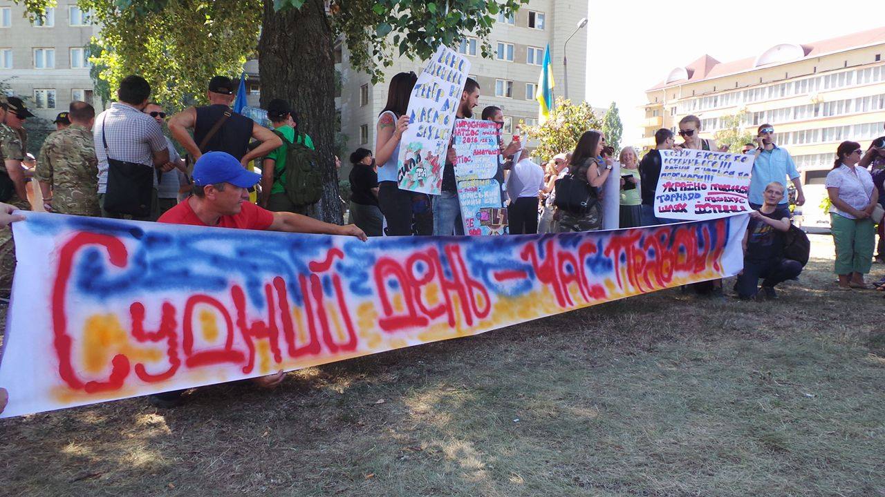 As reported by a correspondent for Censor.NET, the participants of the rally held outside the court demanded public hearing.