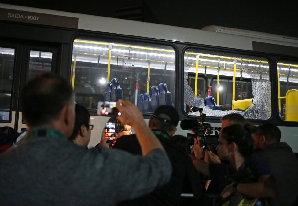 Rio Games bus carrying reporters shot, no one seriously hurt. PHOTOS