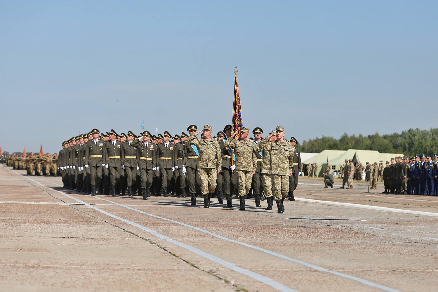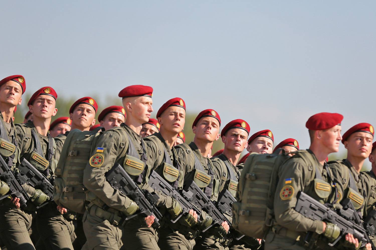 Ukrainian servicemen in newly developed uniforms rehearse Independence Day’s military parade. PHOTOS