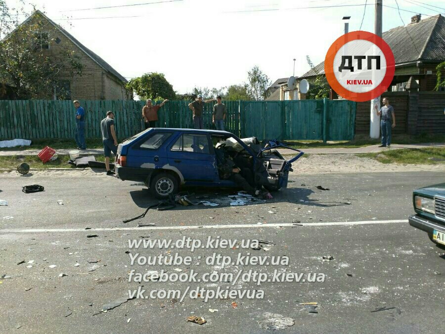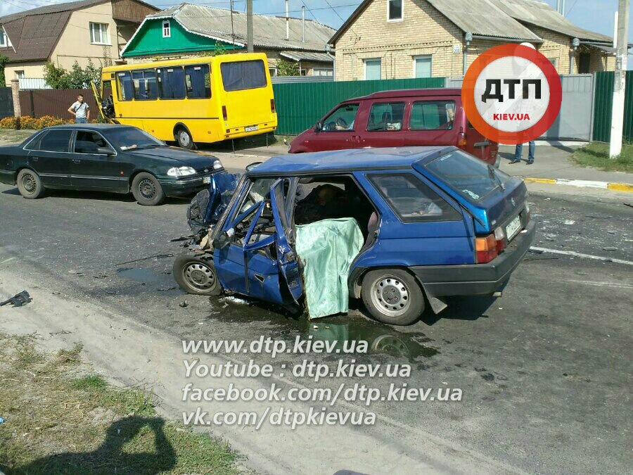 Three people died as a car rammed into a minibus in the Kyiv region.
