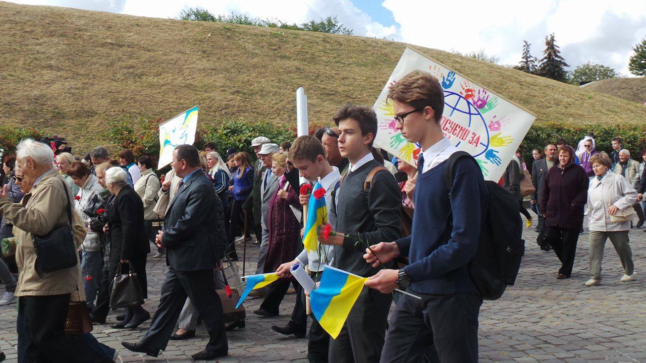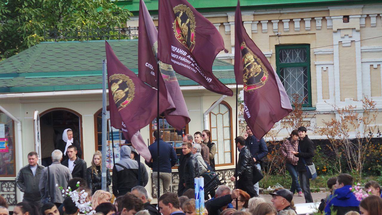 The participants of the walk started near the Afghan-killed Ukrainian soldiers' Memorial. Having laid flowers to the monument, they marched to the National museum of Ukraine's history in the WWII, where a rally was held.
