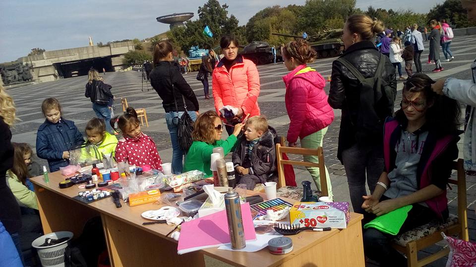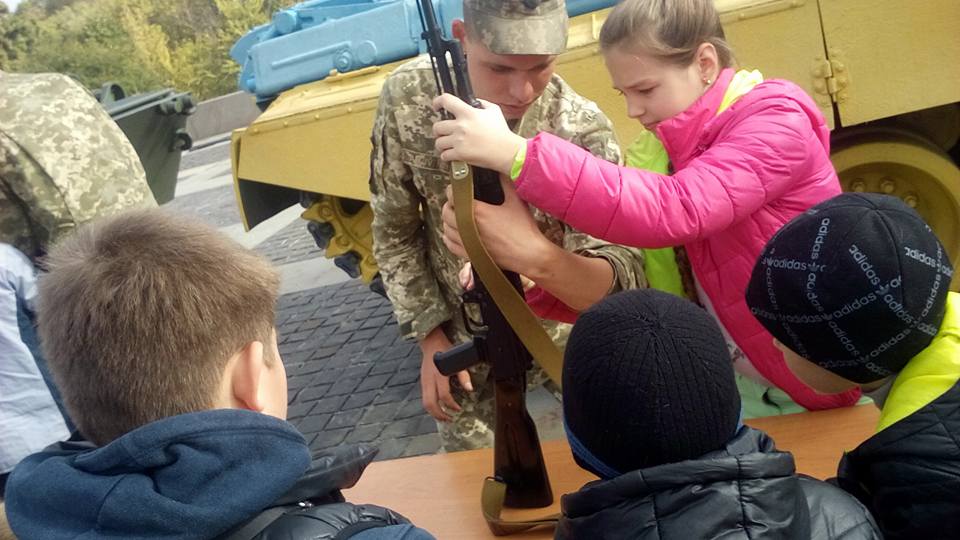 "Entertainment for children, prizes, a speech by public organization head Anatolii Sviridov, some presents from him and Yevhen Mezhevikin for the museum, a movie about the defenders of the Donetsk airport, soldier's porridge from the field kitchen, and gifts to children... Thank you!" she wrote.