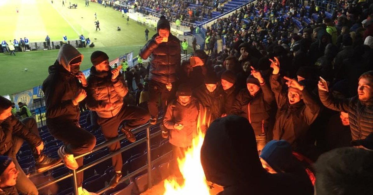 Censor.NET reports referring to social activist Roman Sinitsyn's Facebook page."It's been a long time since I visited such an awesome football match. With so many fireworks, dancing groups, ATO fighters, burned flags of guests, etc.," he wrote.