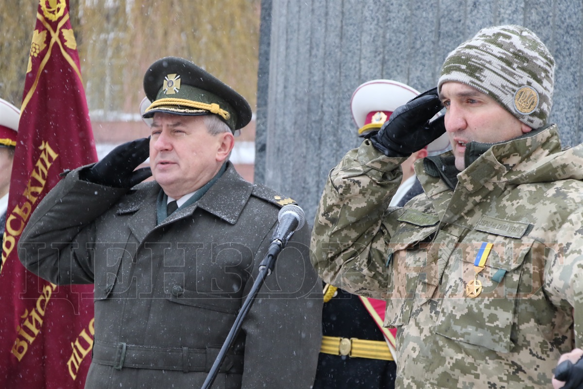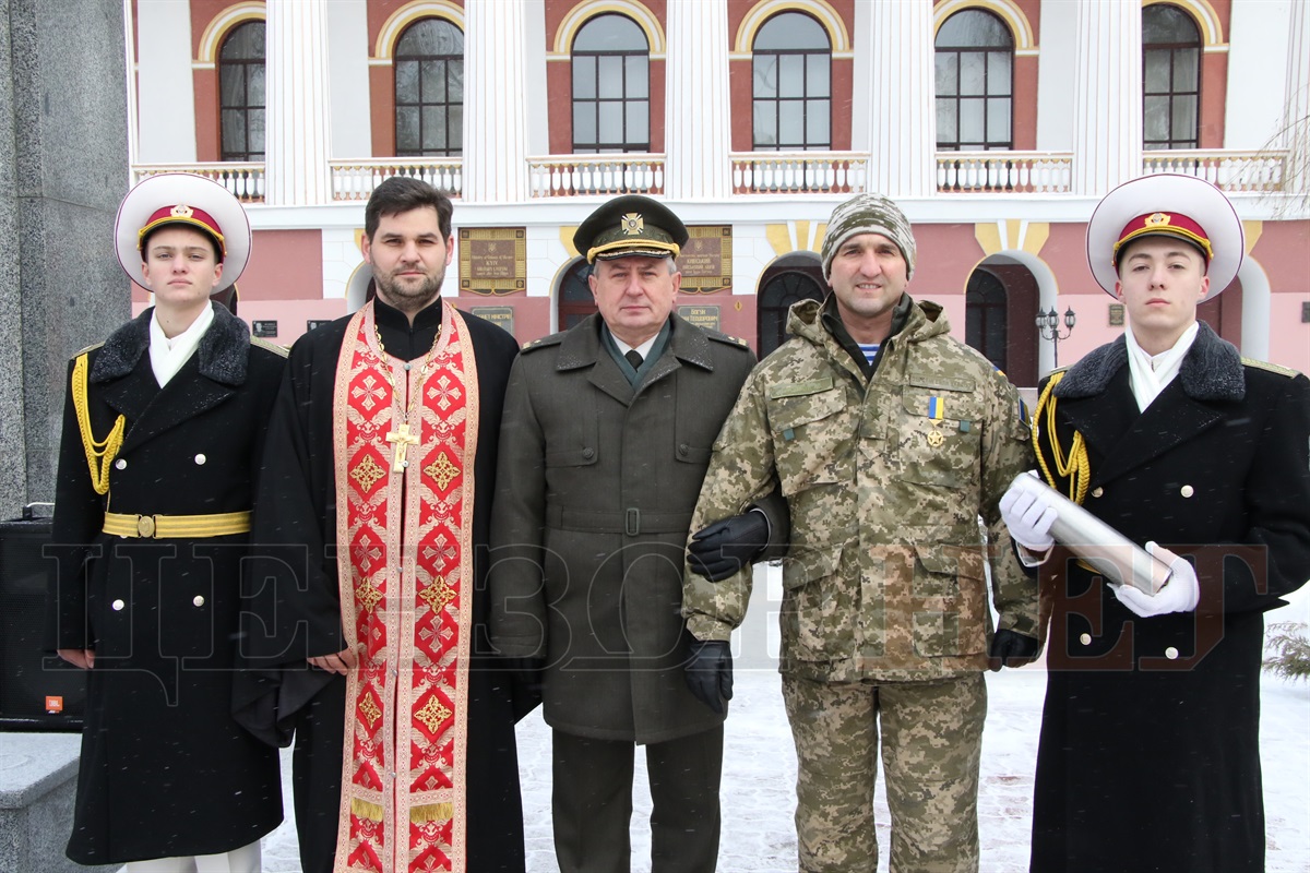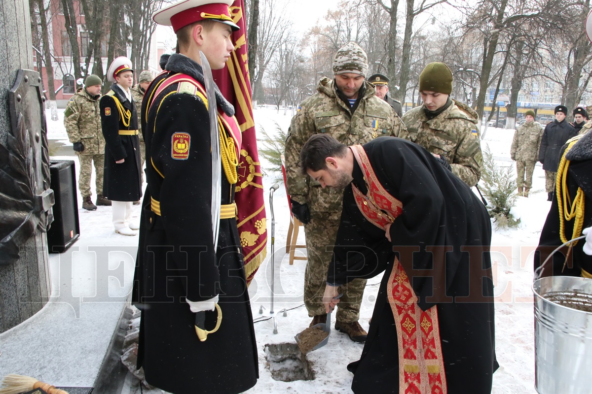 Lyceum's Head, Major General Ihor Hordiichuk in his speech stressed the fact of laying the capsule on Ukraine's Armed Forces Day and thanked Sviatoslav Vakarchuk, a famous Ukrainian singer, for donating funds to build the monument.