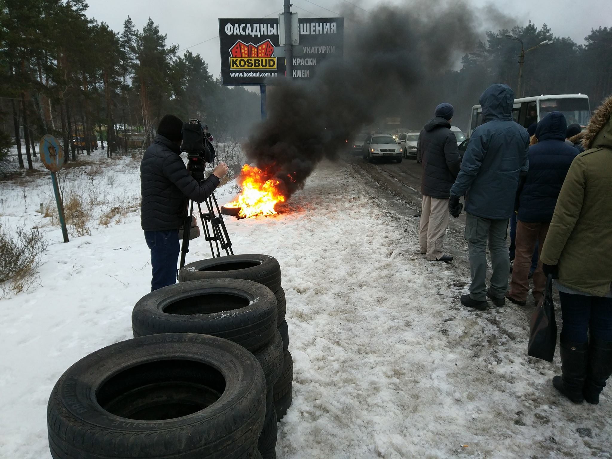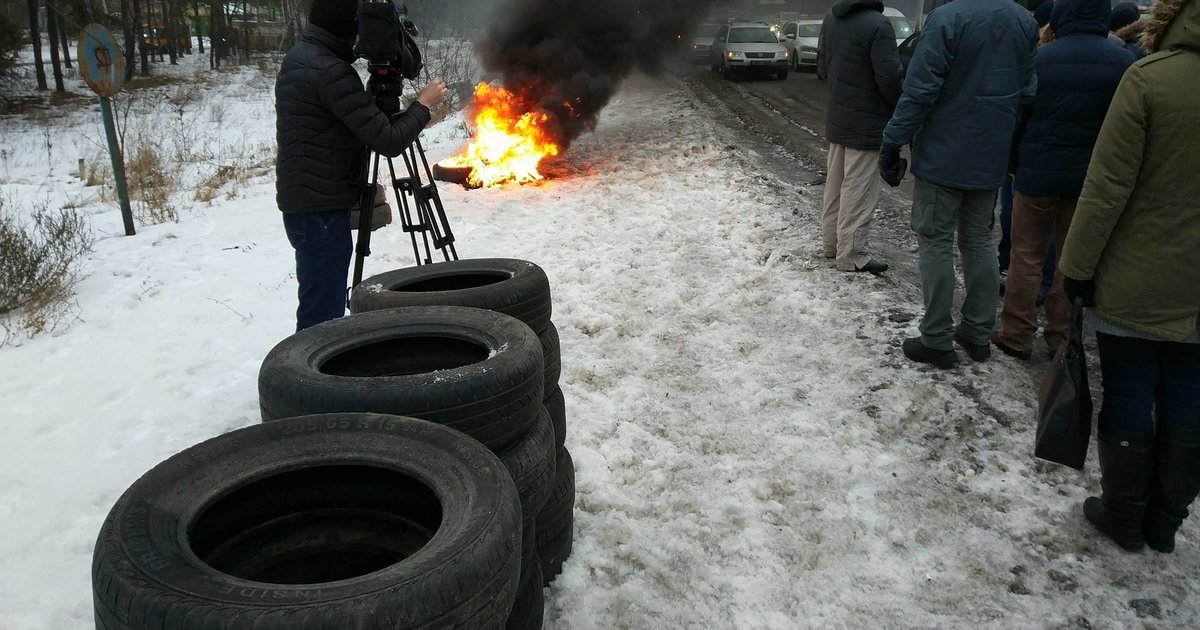 Protesters block entrances to Kyiv, burn tires. PHOTOS