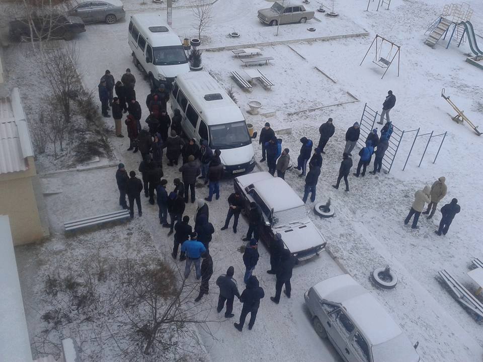 According to the report, several dozen armed men in the courtyard were preventing residents from leaving the apartment house.
