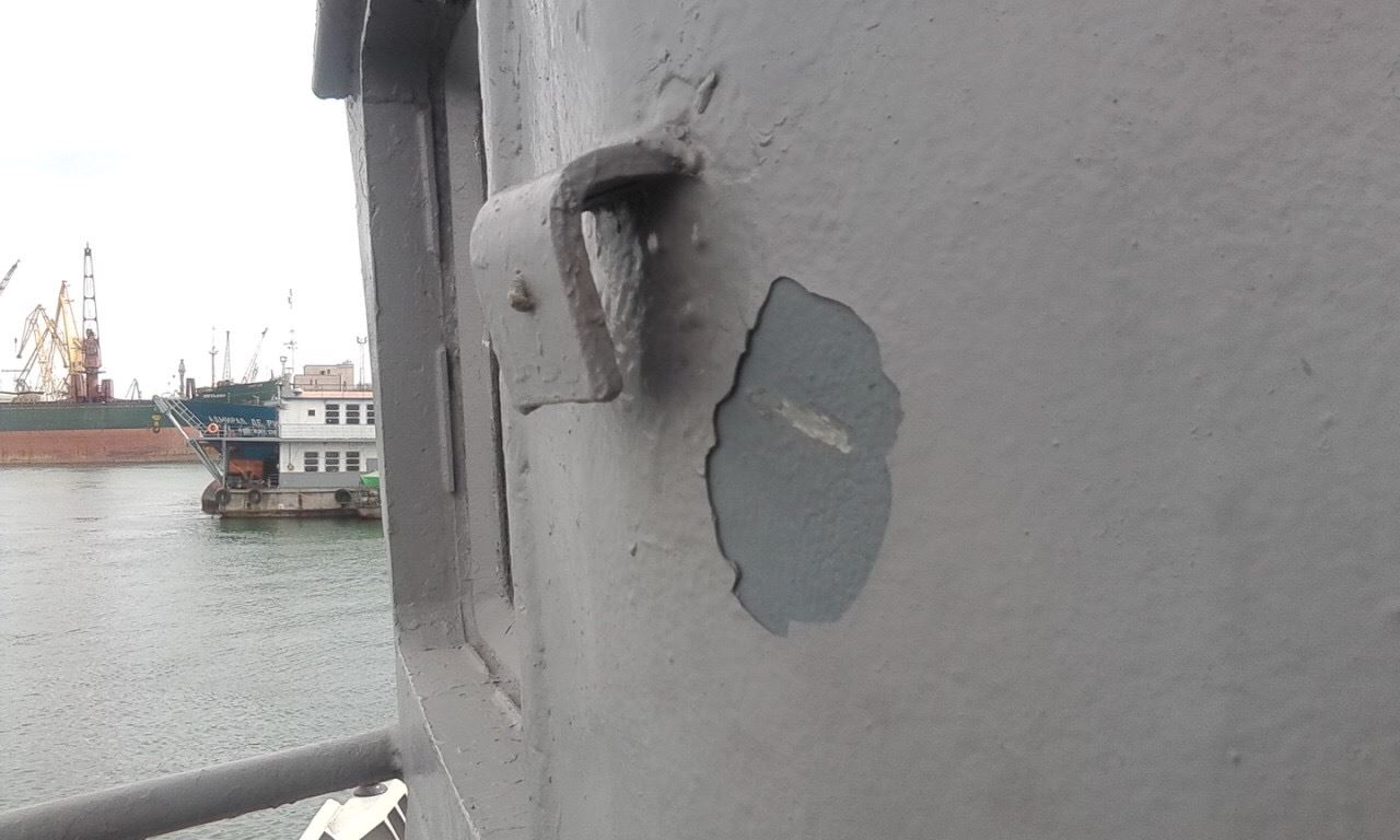 "Of course, the information immediately evolved into a cause célèbre. We have already heard the version of our "neighbor". It would be great to hear the truth now. The truth is that the information was turned upside down. In contrast to the unsubstantiated statements traditionally made by the Russian officials without evidence and justification, we have proofs to show to the audience - the bullet halls on the cabin of Pochaiv diving support vessel made by sniper attacks.