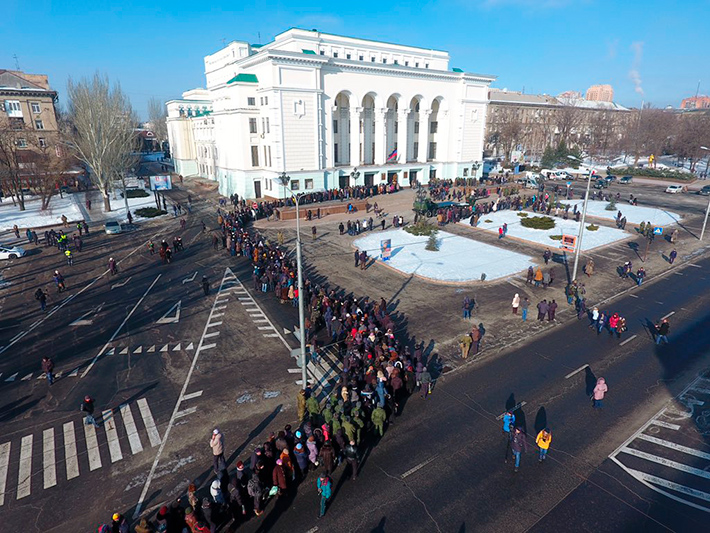 "At the moment, some 1,000 people gathered at the Donbas Opera building. They formed a line along the main Artema Street," separatist media reported in the morning.